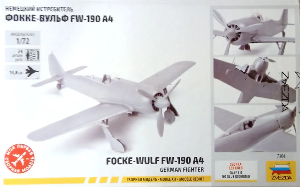 Avião Focke Wulf FW-190 A4 Kit Zvezda 1/72 plastimodelismo Miniatura em plástico para montar e colecionarNão é brinquedo - modelo voltado a hobby e coleçãoRecomendado para 14 anos e acima Tamanho aproximado 13,8cm 34 peçasKit incl. instruções de construção e decalques Não acompanha: