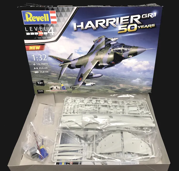 Avião Harrier GR-1 Kit Revell 1/32 ed. especial 50 anos c/ cola, pincel e tintas
