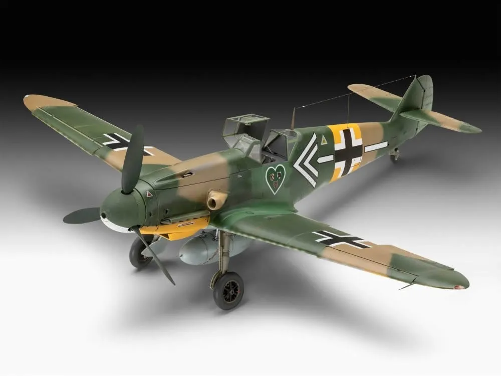 O Bf109 é um dos mais famosos aviões de combate da Luftwaffe na Segunda Guerra Mundial. Mais de 33.000 Bf109 foram construídos em várias versões diferentes. Tanto a capacidade de escalada quanto a aceleração no mergulho foram dois dos pontos fortes do Bf109. Em produção desde o verão de 1942, a série Bf109G exibiu algumas mudanças visíveis em comparação com a versão anterior do Bf109F. O G-5 / G-6 tinha um canhão MK 151/20 mm disparando através do motor. Duas metralhadoras MG 131 foram instaladas acima do motor. A alimentação da correia para o armamento aprimorado exigia modificações aerodinâmicas nas capotas do motor, o que dava à aeronave seus solavancos característicos.