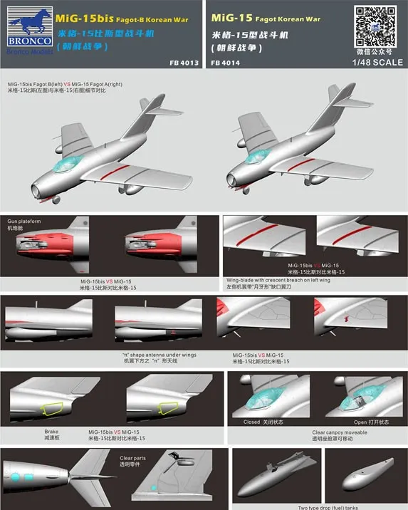 Kit Bronco nº FB4014 - MiG-15 Fagot-B Guerra da Coréia