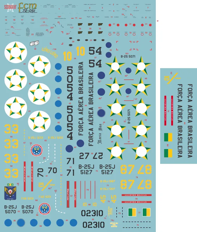 Decalque North American B-25 B/J Mitchell Decal Fcm 72051 1/72 PlastimodelismoDecalque para a aplicação em plastimodelismoSeis opções de marcação incluindo versões da FABRecomendado para 14 anos e acimaProduto no Brasil - Disponível para pronta entrega!